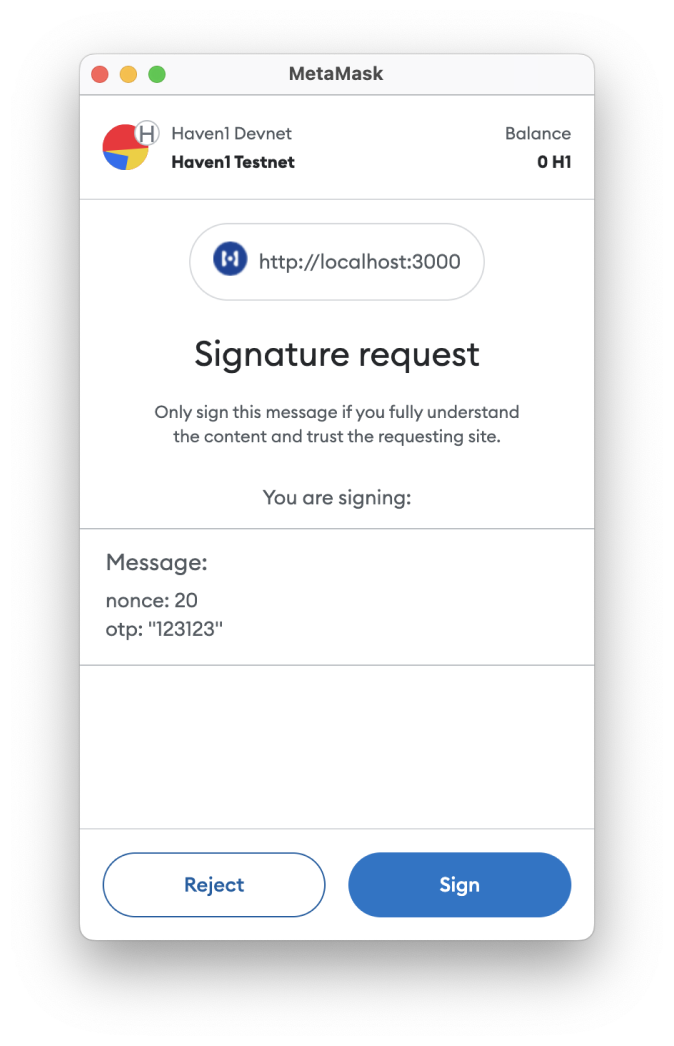 Your wallet will ask you to sign a message which includes your pin