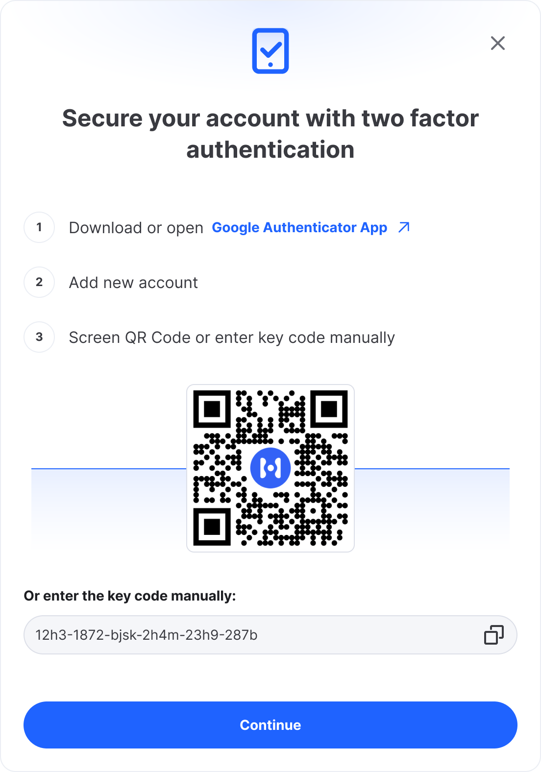 Alternatively, you can also copy the key manually to input into your authenticator app