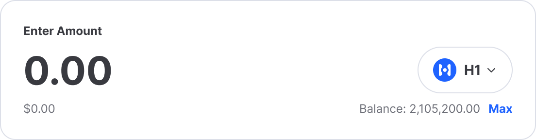<figure><img src="https://3309393825-files.gitbook.io/~/files/v0/b/gitbook-x-prod.appspot.com/o/spaces%2FZQs8AgD1Q94eXLnuVHjz%2Fuploads%2FUCLYwEULxYoPSVqmb5Xh%2Fstake-h1-amount.png?alt=media&#x26;token=c7c97de3-d190-4adc-960c-abc86d272b38" alt="" width="375"><figcaption></figcaption></figure>