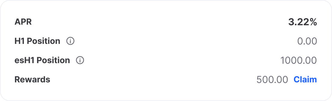 * Transaction Fees: A nominal fee of $1 worth of H1 is applied for unstaking tokens and claiming rewards. This fee covers the operational costs associated with these transactions on the blockchain.